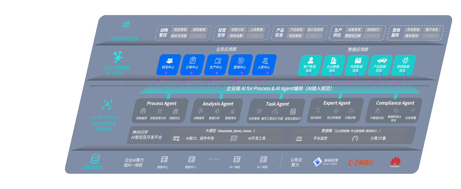 端到端的一站式AI工作空间深度融合了从企业战略规划到日常经营的全流程业务板块,,,,定向解决车企内部领域多、、、、部门多、、、、链条长、、、、场景碎片化等难题,,支持车企快速构建以AI为核心的生产力写作体系,,,,实现任务执行与AI能力的无缝集成与交互